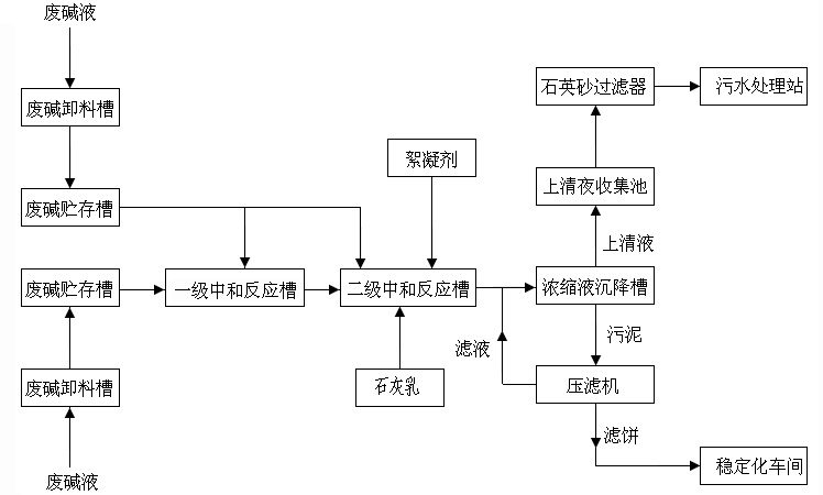 物化處理采用酸堿中和工藝,殘渣進(jìn)入固化車間處理,液體則進(jìn)入廢水處理站繼續(xù)處理。