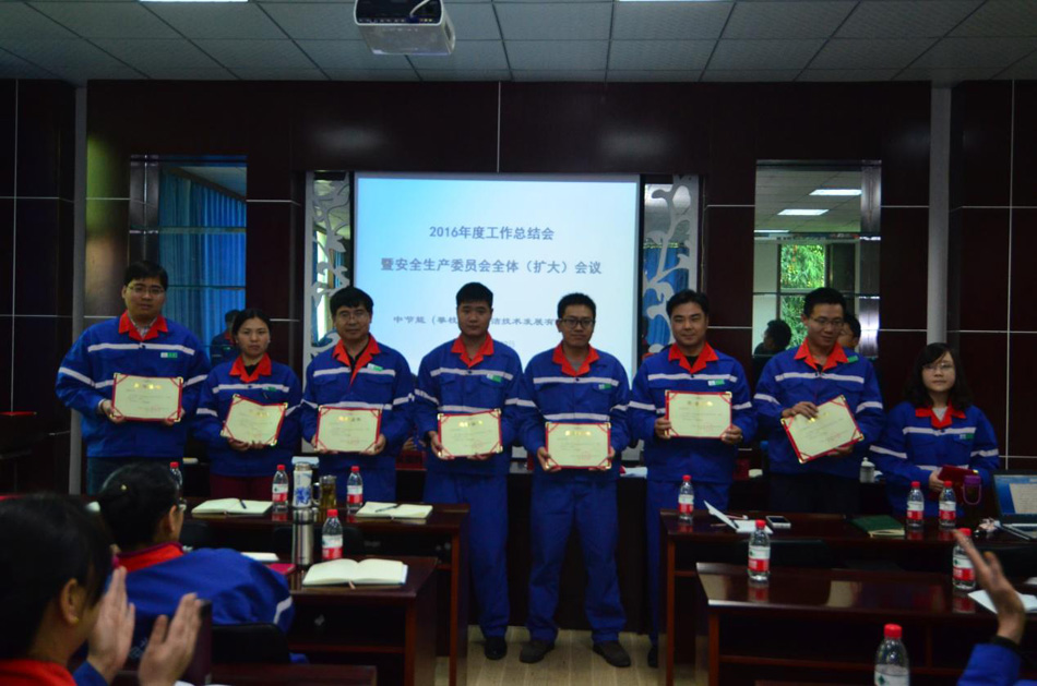 2017年1月22日,中節(jié)能(攀枝花)清潔技術(shù)發(fā)展有限公司召開了2016年度工作總結(jié)會暨安全生產(chǎn)委員會全體擴(kuò)大會。會議傳達(dá)了上級公司關(guān)于安全生產(chǎn)工作的有關(guān)精神,宣貫了“安全九條禁令”和關(guān)于安全、環(huán)保刑事犯罪“兩高”司法解釋。各部門負(fù)責(zé)人分別與公司簽訂了《2017年安全環(huán)保目標(biāo)責(zé)任書》,中層以上管理人員及核心崗位人員分別與公司簽訂了《廉潔從業(yè)責(zé)任書》。會議宣讀了中國環(huán)境保護(hù)集團(tuán)公司、中節(jié)能清潔技術(shù)發(fā)展有限公司關(guān)于表彰2016年度先進(jìn)集體和先進(jìn)個人的決定,宣讀了攀枝花公司表彰2016年度先進(jìn)個人決定,對獲得表彰的先進(jìn)班組和先進(jìn)個人頒發(fā)了榮譽證書。