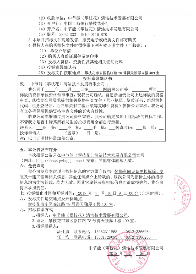 焚燒車間煙氣加熱器技術(shù)改造工程招標公告